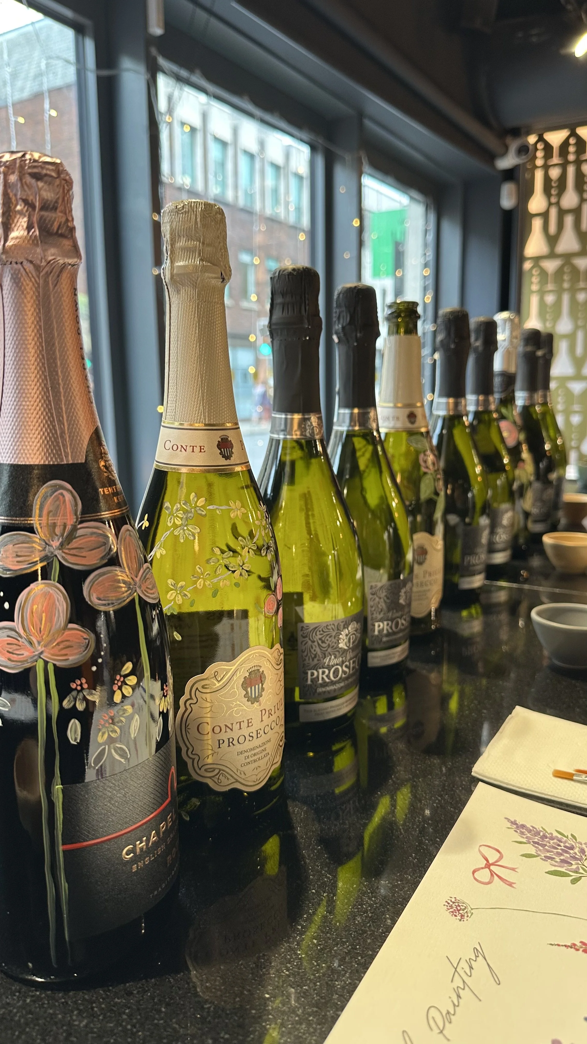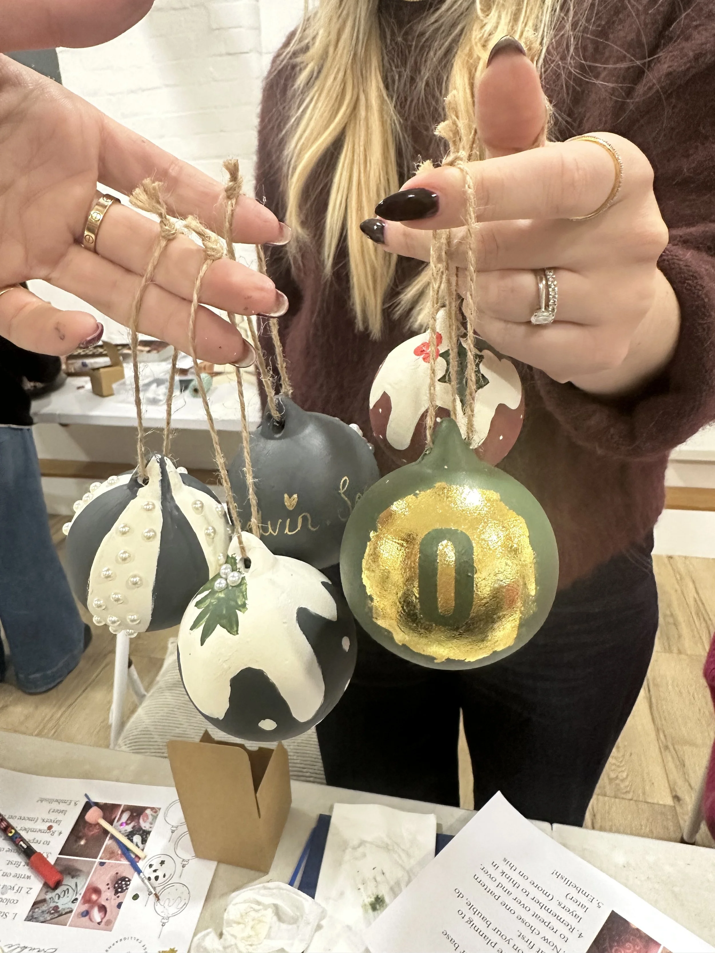 Elevate your next festive team celebration day, or luxury client experience with a personalised Modern Calligraphy Workshop, Bauble Painting, Wax Seal Making and fizz bottle Painting by Su, The Cambridge Calligrapher.